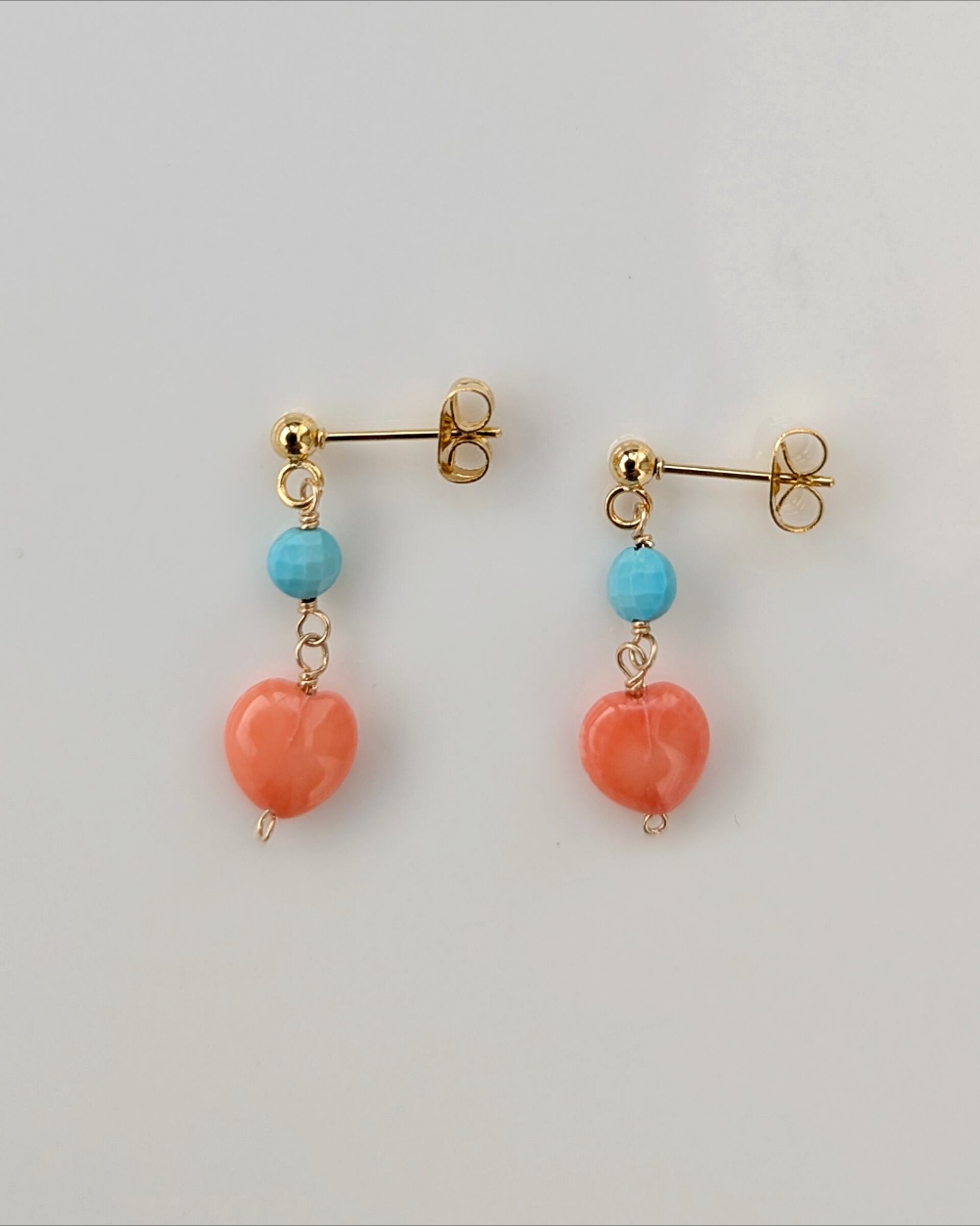 ▶︎ハート形の珊瑚と爽やかブルーのハウライトターコイズの耳飾り(珊瑚:3月誕生石)