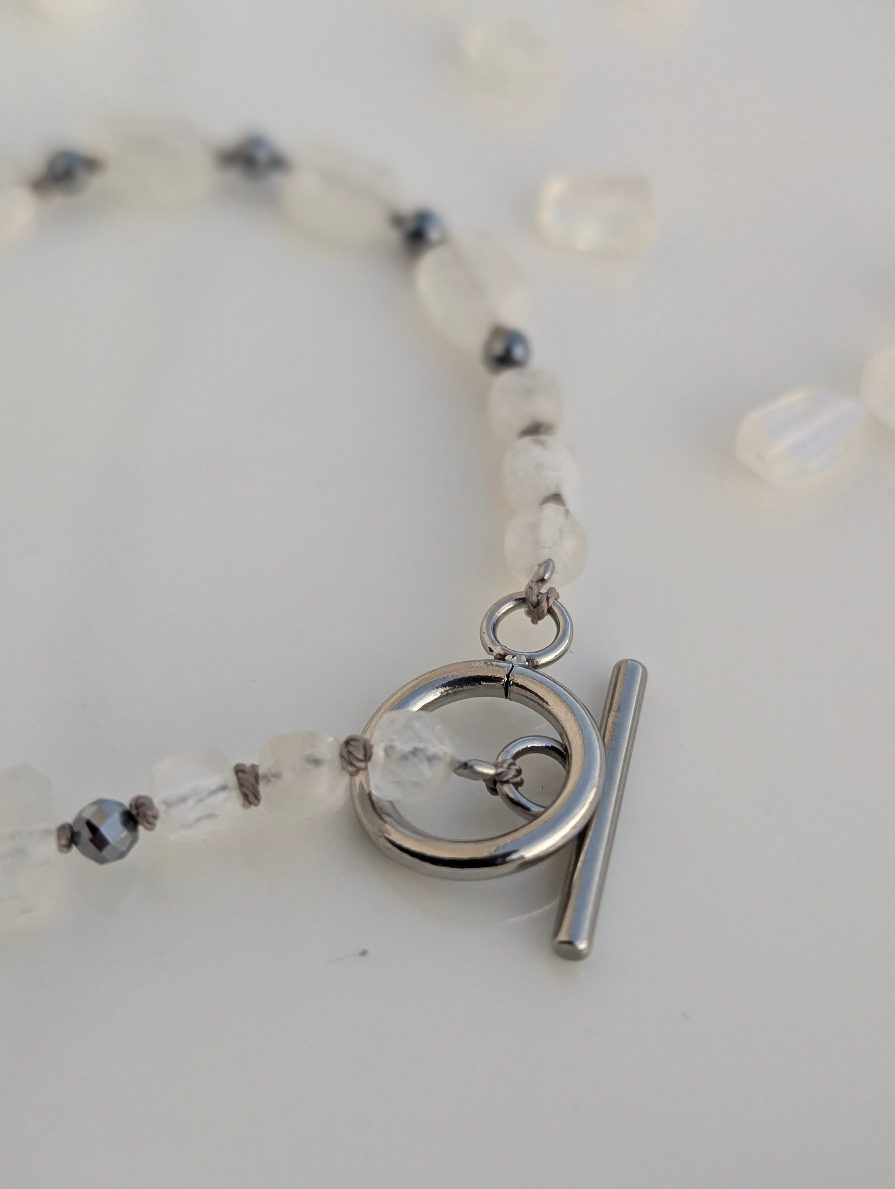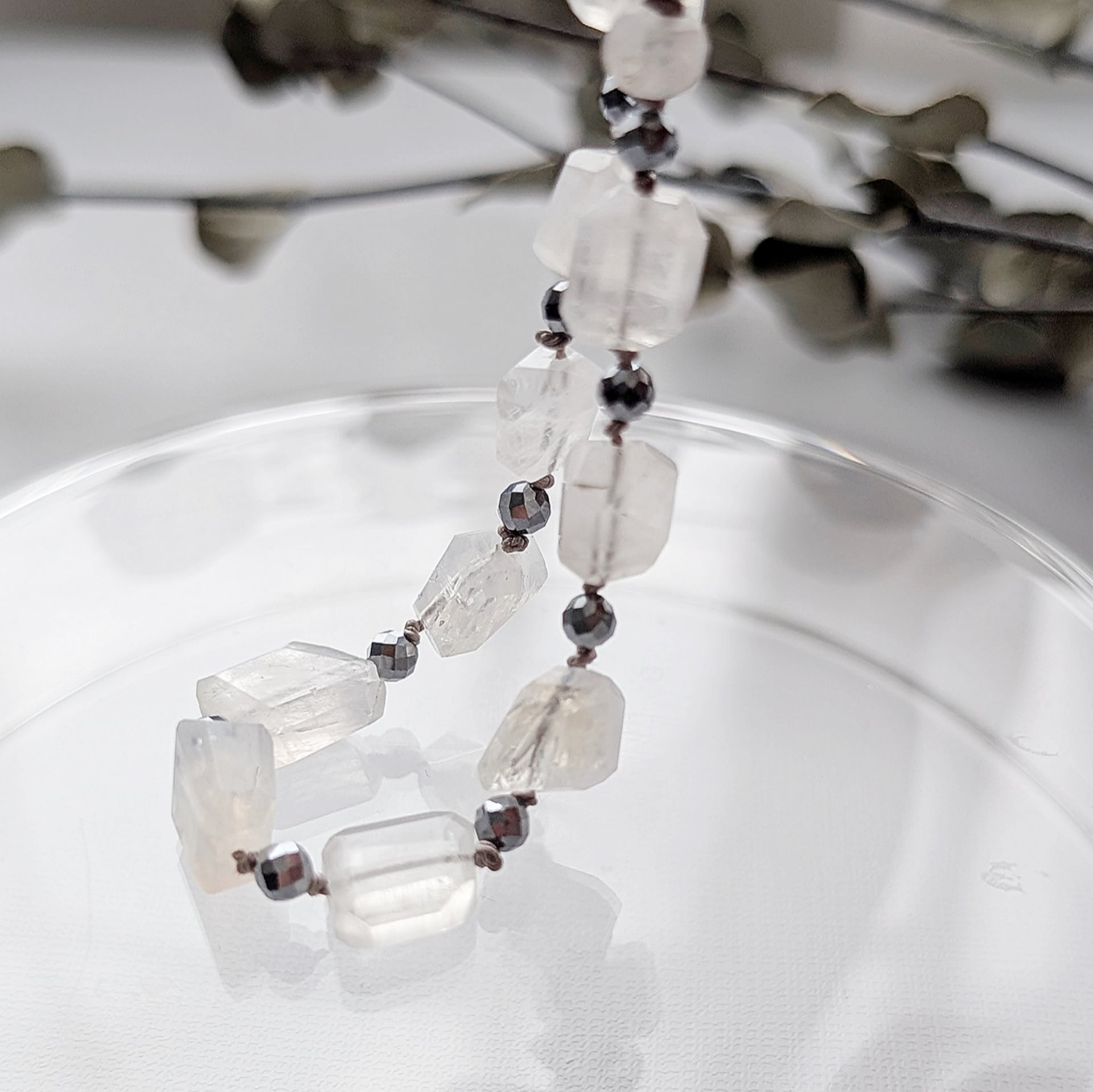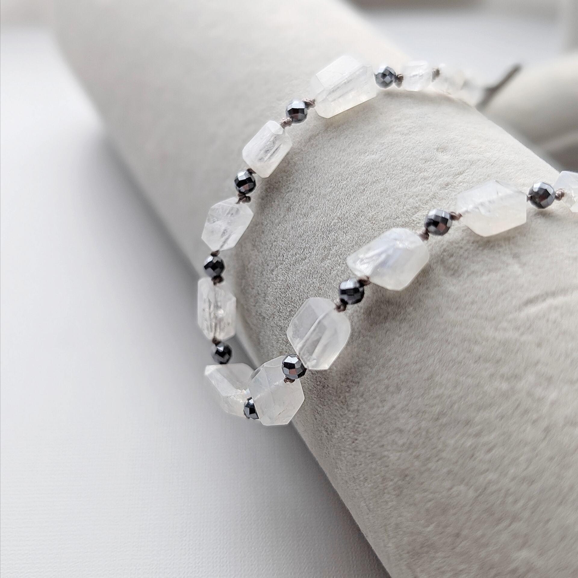ブルームーンストーンのノット仕立てのマンテルブレスレット (6月誕生石) ホワイトカラーの天然石 シンプルコーデがお好きな方へおすすめ