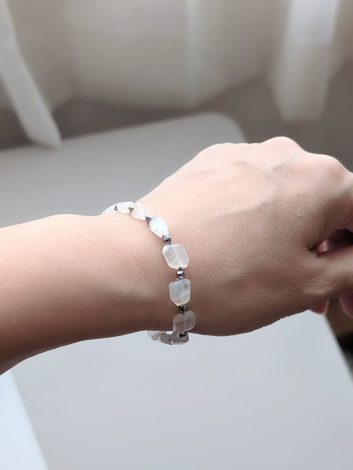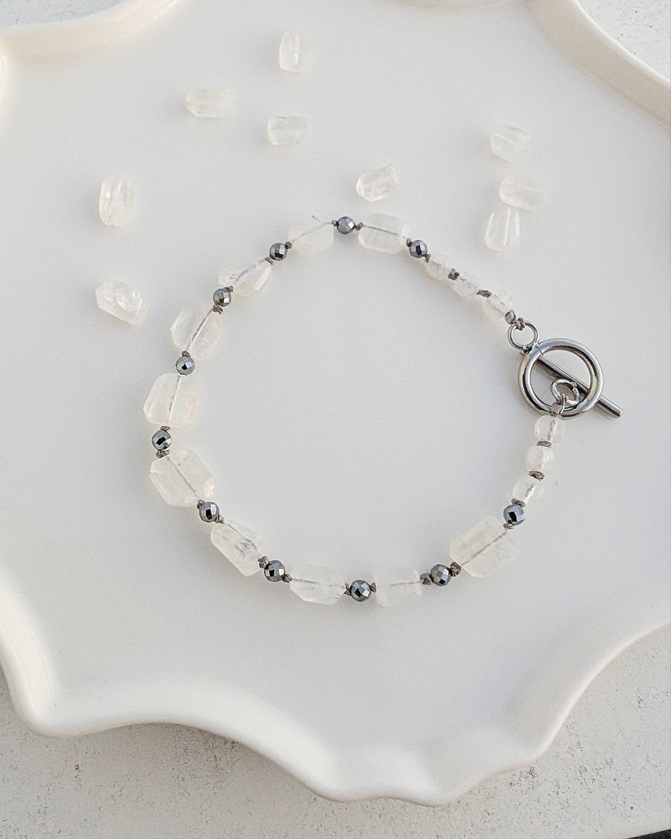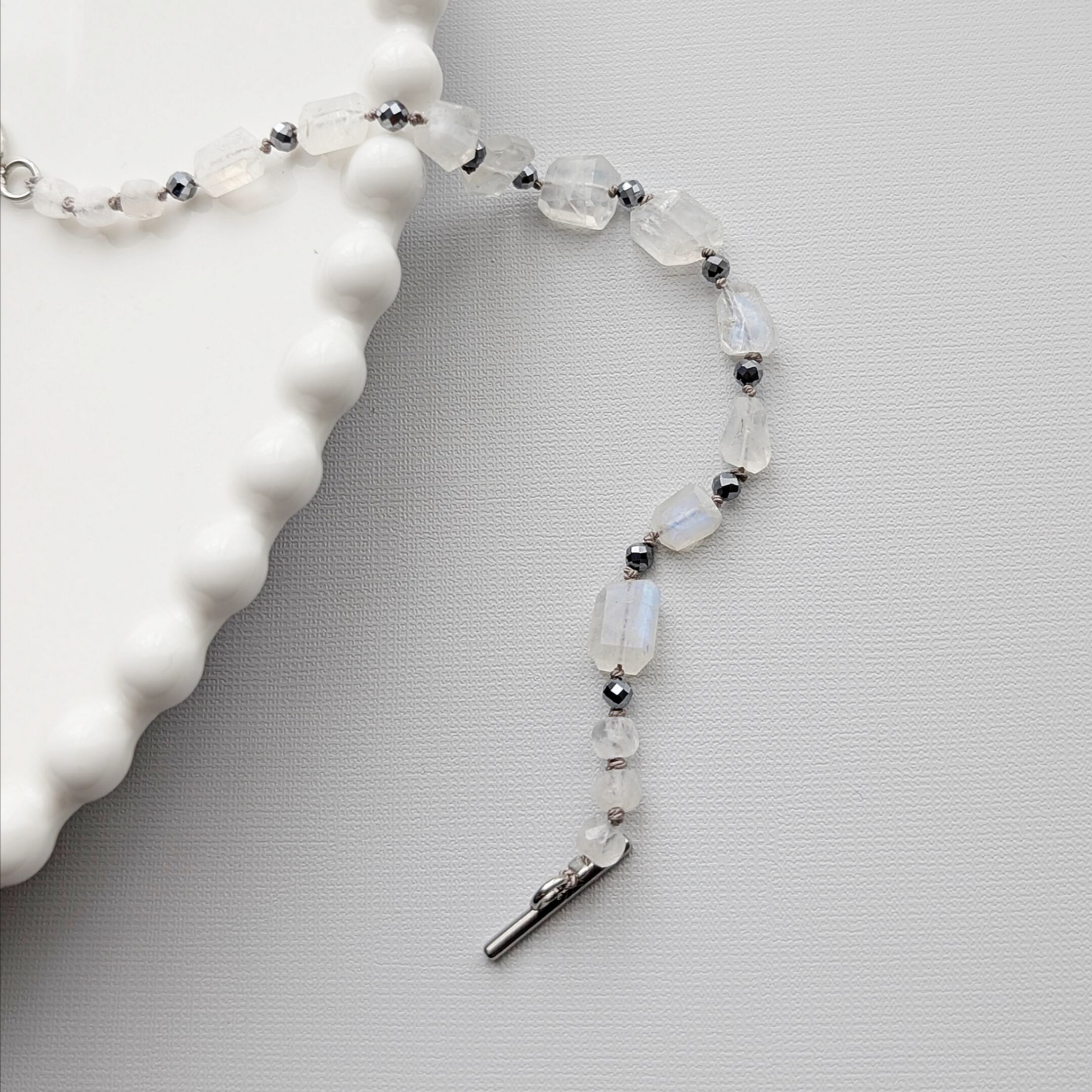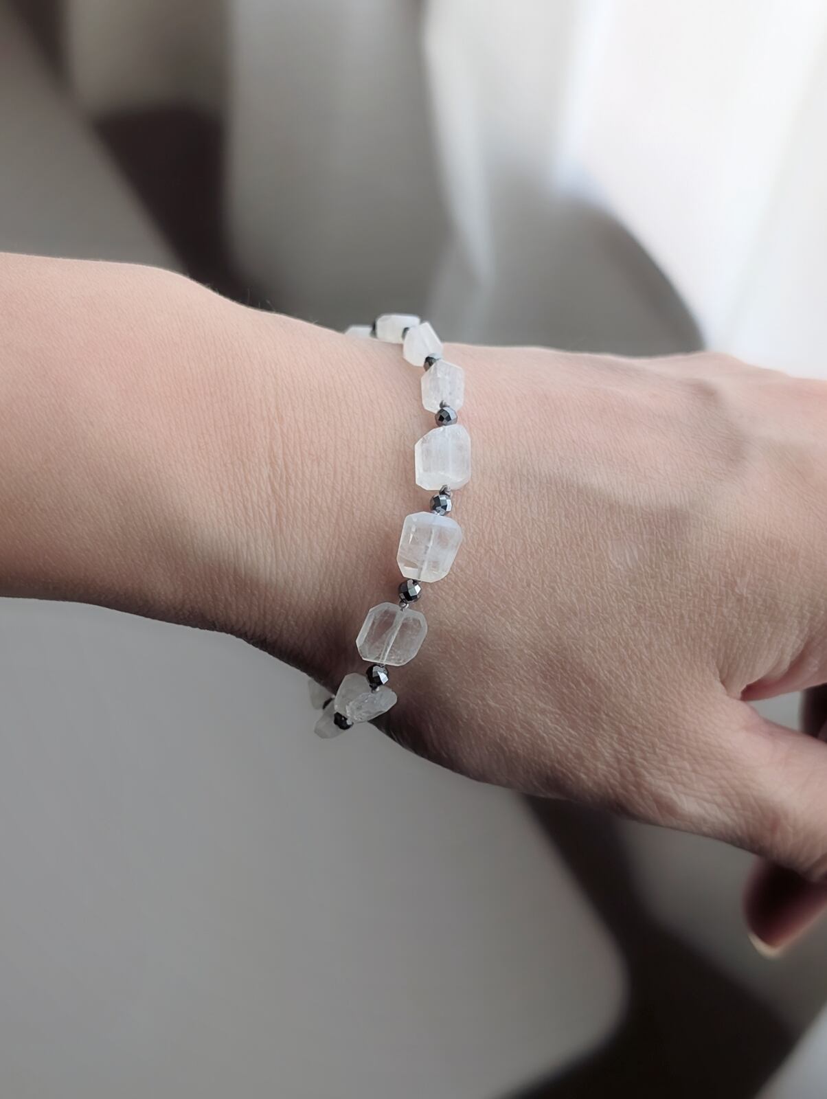 ブルームーンストーンのノット仕立てのマンテルブレスレット (6月誕生石) ホワイトカラーの天然石 シンプルコーデがお好きな方へおすすめ
