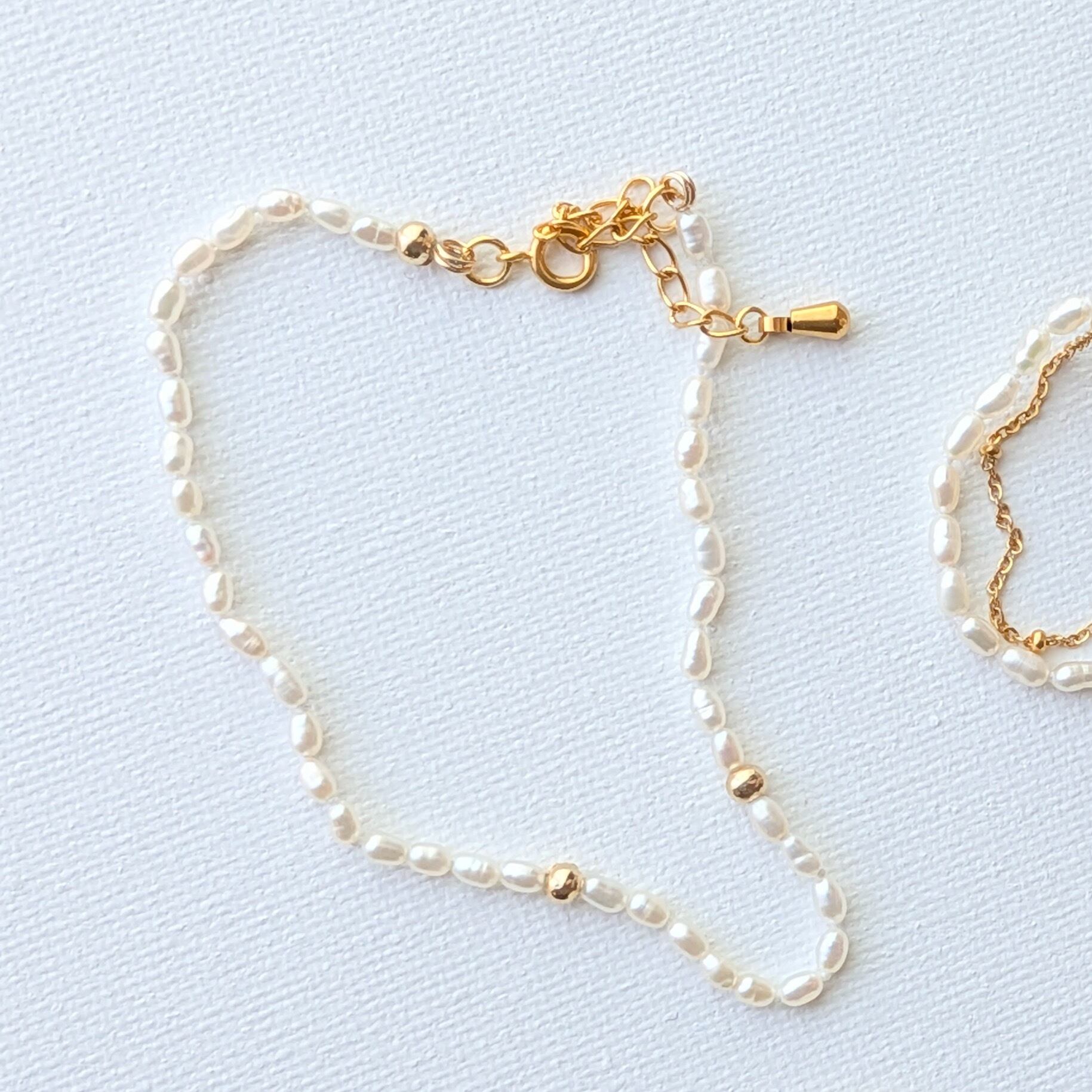 一粒一粒丁寧にノット仕立てにした繊細なブレスレットです☆