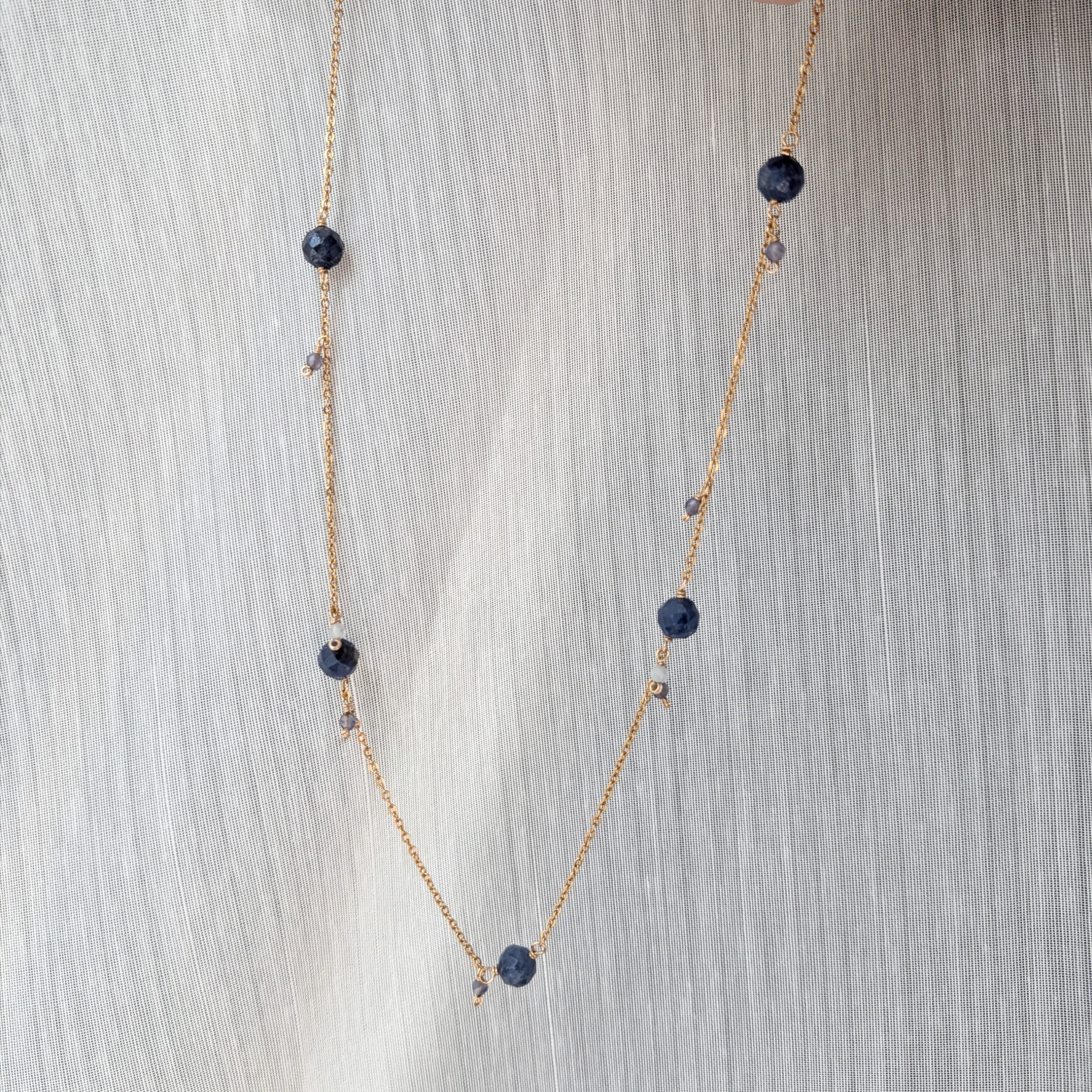 ▶︎サファイアのネックレス 約41cm (サファイア:9月誕生石) 重ね付けにもおすすめな華奢な天然石ネックレス