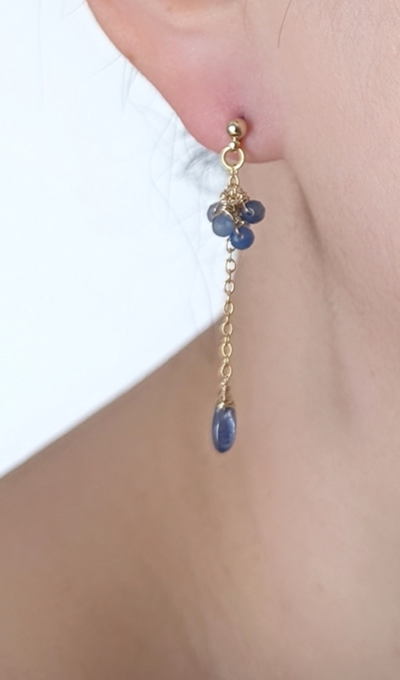 カイヤナイトとブルーアベンチュリンのアシメントリー耳飾り 【シリーズ】ブルー